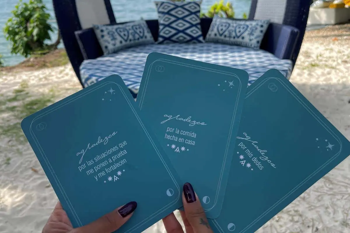 As part of our conscious approach, we invite each visitor to participate in a gratitude ritual, where a card is chosen with three reasons to be grateful.